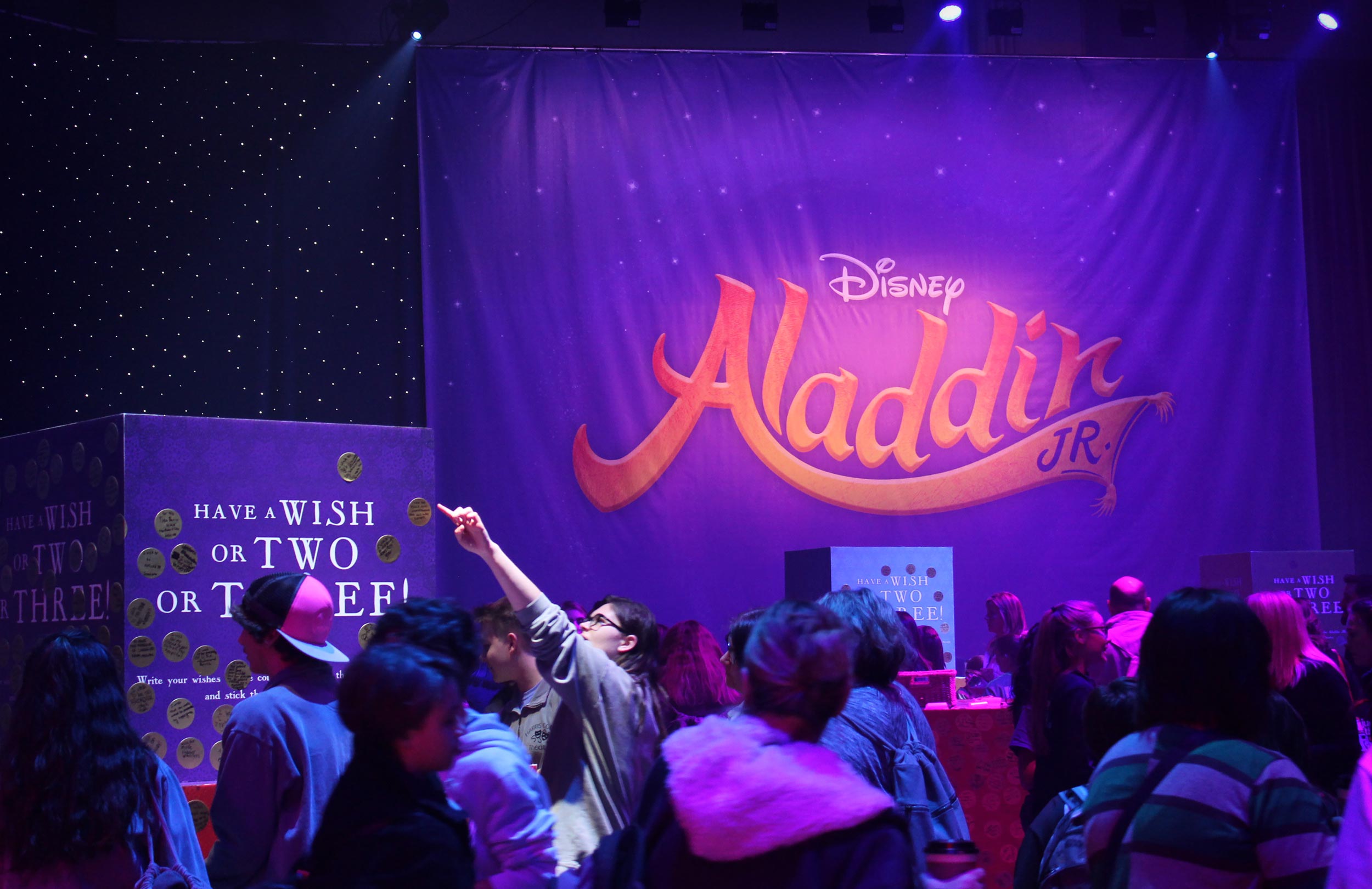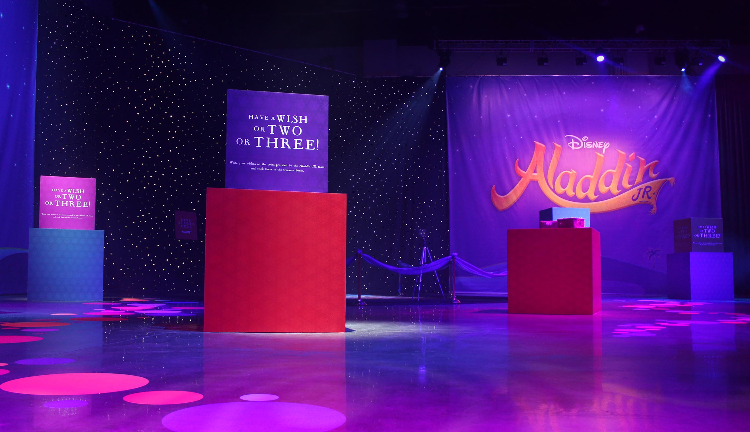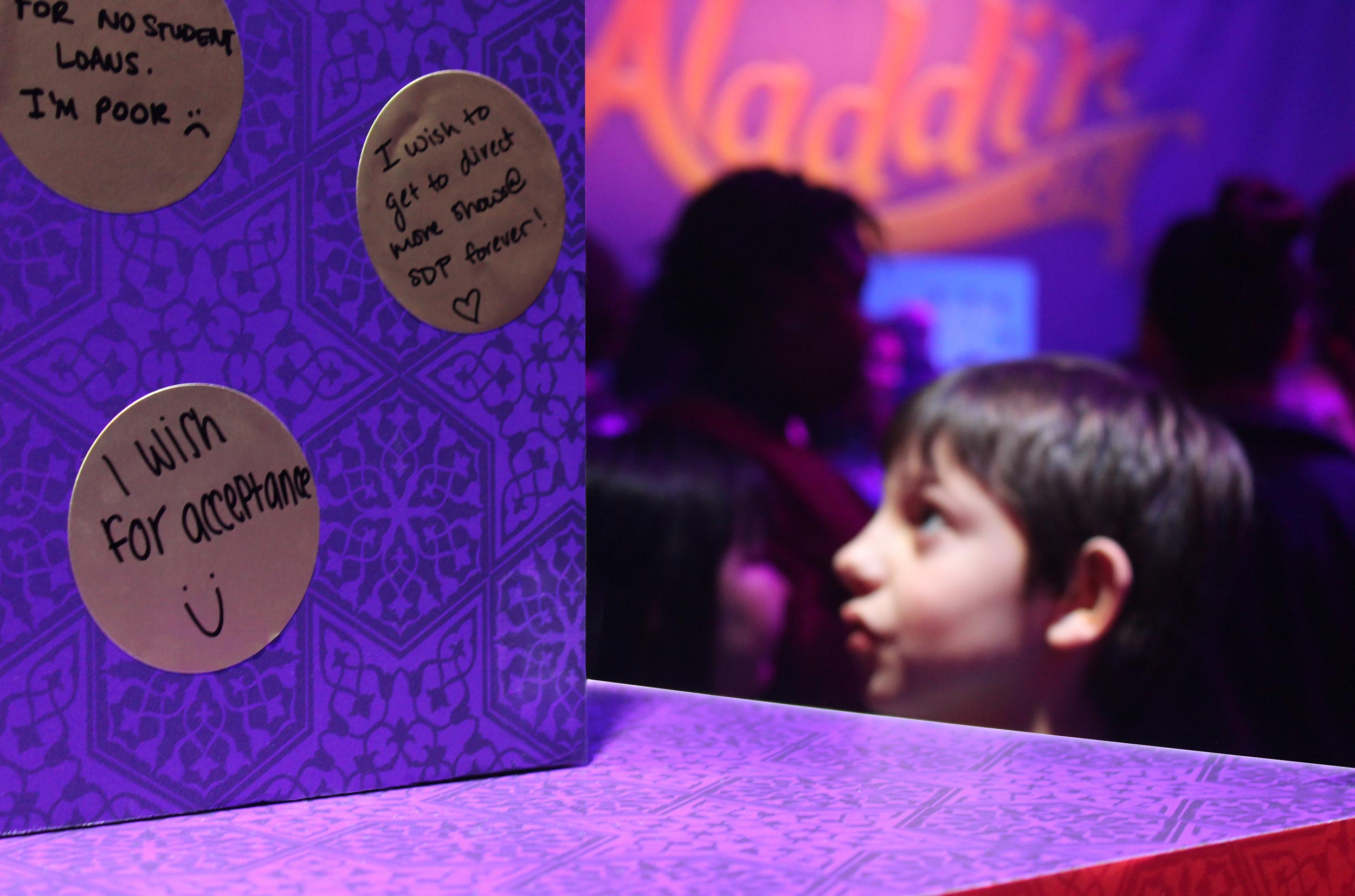 All attendees were invited to share "a wish, or two, or three" on colorful boxes with the provided gold coins. Throughout the three-day event, each seven-foot structure gradually transformed into a magical mound of treasure filled with heartwarming responses. Attendees also had the opportunity to take a magic carpet ride through JTF on a custom 3D floor mural, while posing for a photo with the magic lamp from the original hit Broadway musical.