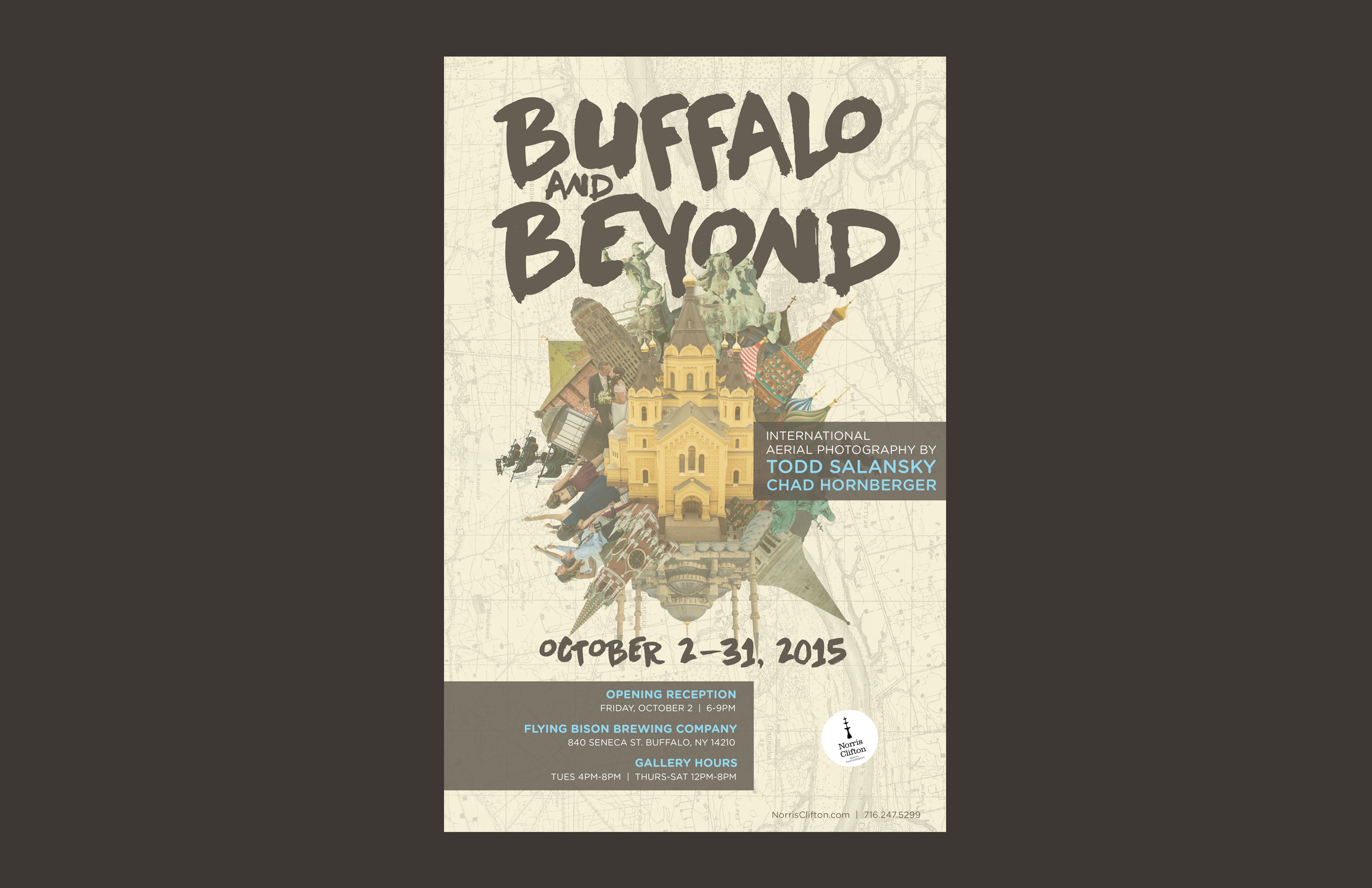 In 2015, I was asked by Norris Clifton Aerial Photography to create a stylized poster and sizzle reel for their exhibition titled "Buffalo and Beyond". The show featured several digital prints of photos taken internationally with custom aerial drones. The idea for the concept came to mind while flipping through the images and reimagining the cycle of adventures from around the world. As a way to depict a sense of movement and rotation, multiple images from the exhibition were placed into a striking roulette pattern.