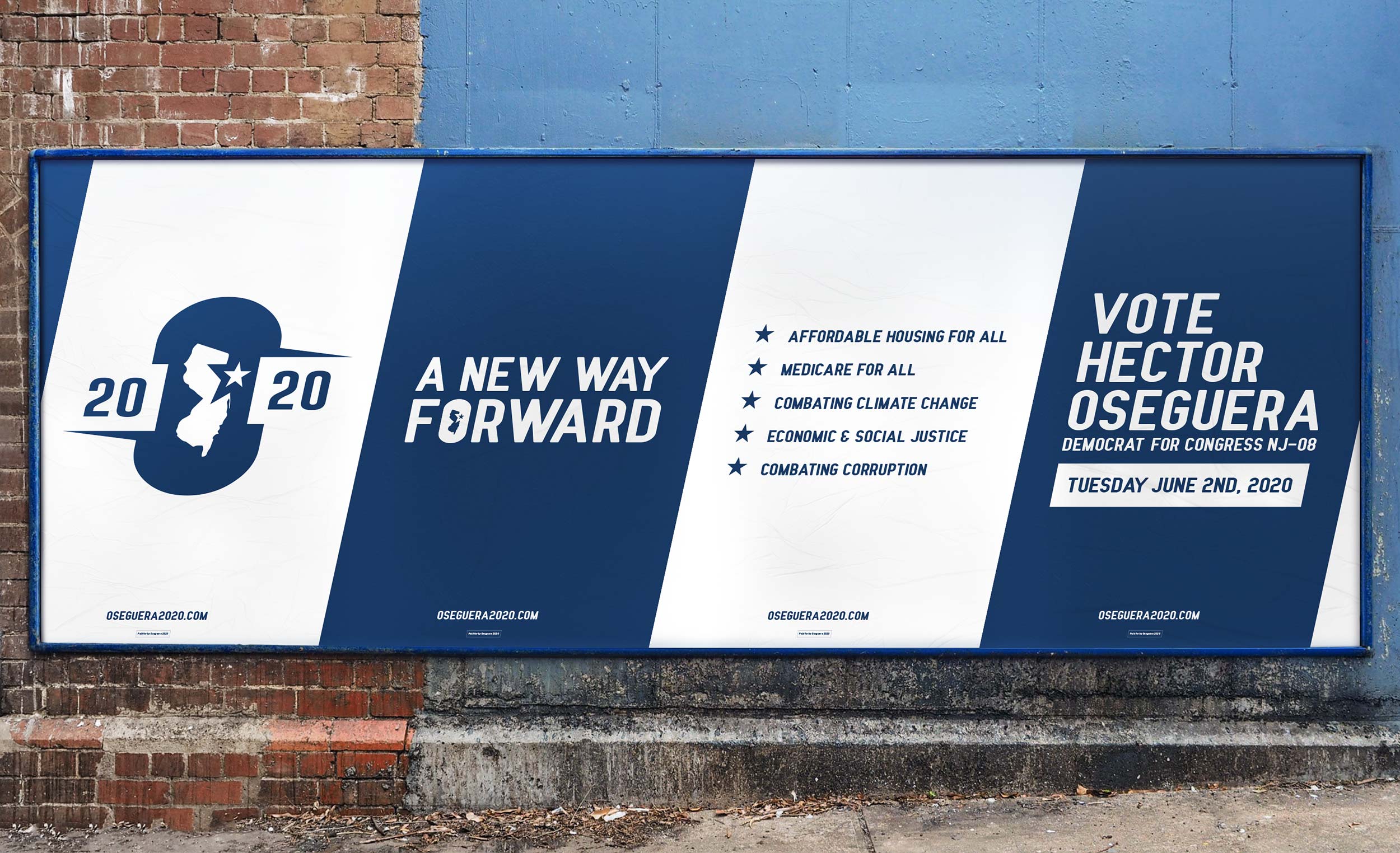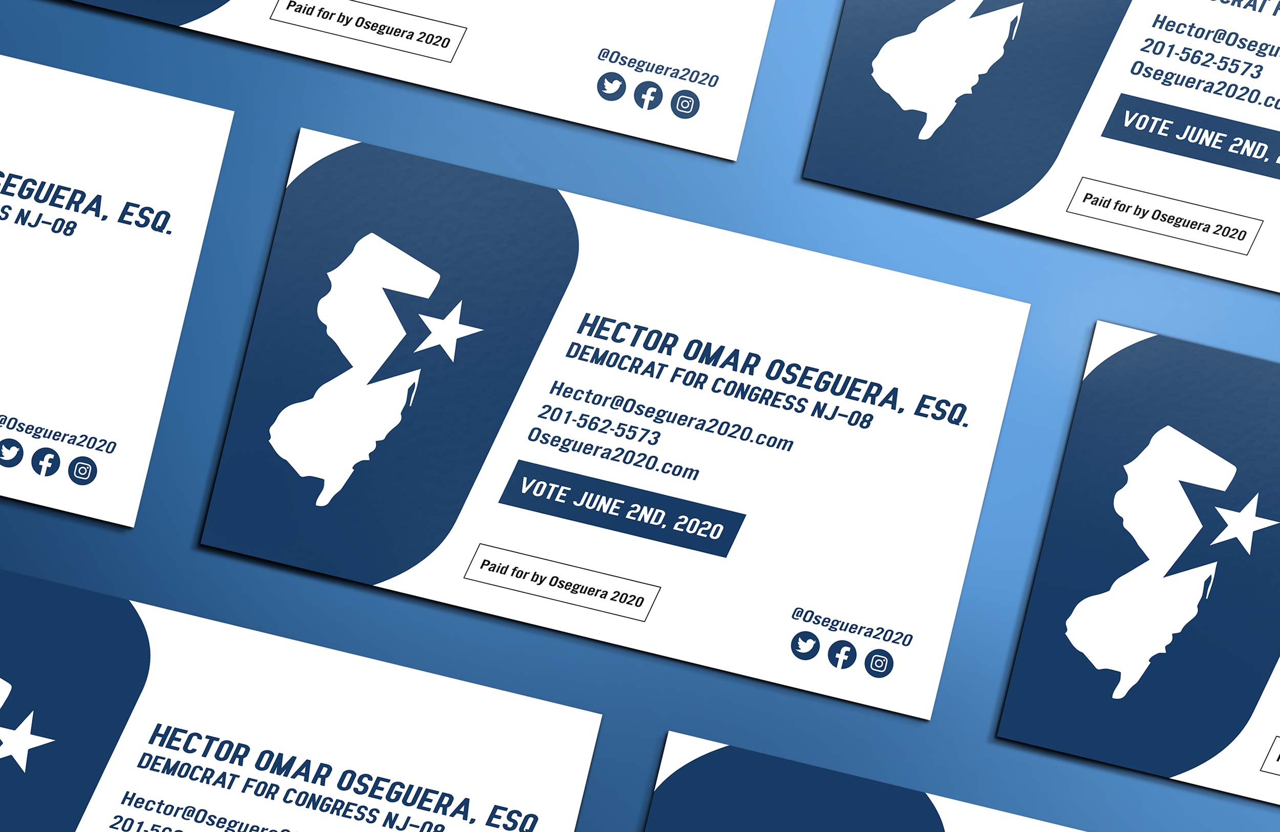 In the exploration, we found that the letter O was the best way to visually resonate with Oseguera. The silhouette of New Jersey is encompassed within the O, while the star was added as a way to help the local public recognize the geographical location of District 8.
