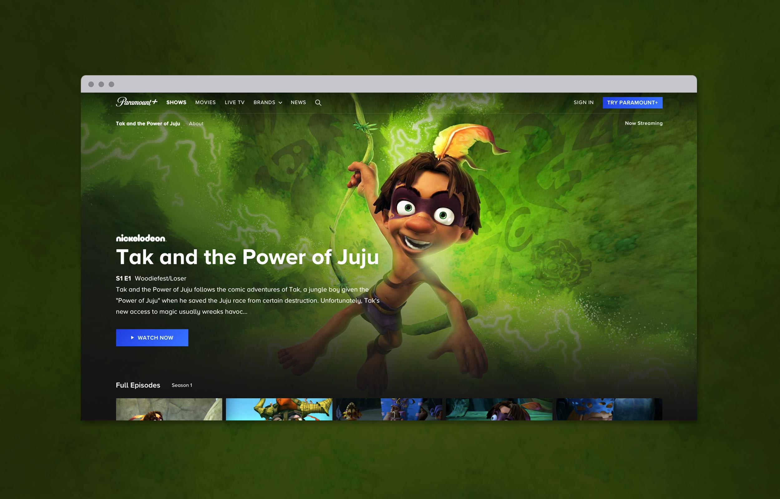 Tak and the Power of Juju is an animated action-adventure television series that aired on Nickelodeon. Based on the popular video game of the same name, the television series follows the main character named Tak, who must learn how to use his newly acquired magical Juju powers to protect the Pupununu people from Tlaloc's evil spell.